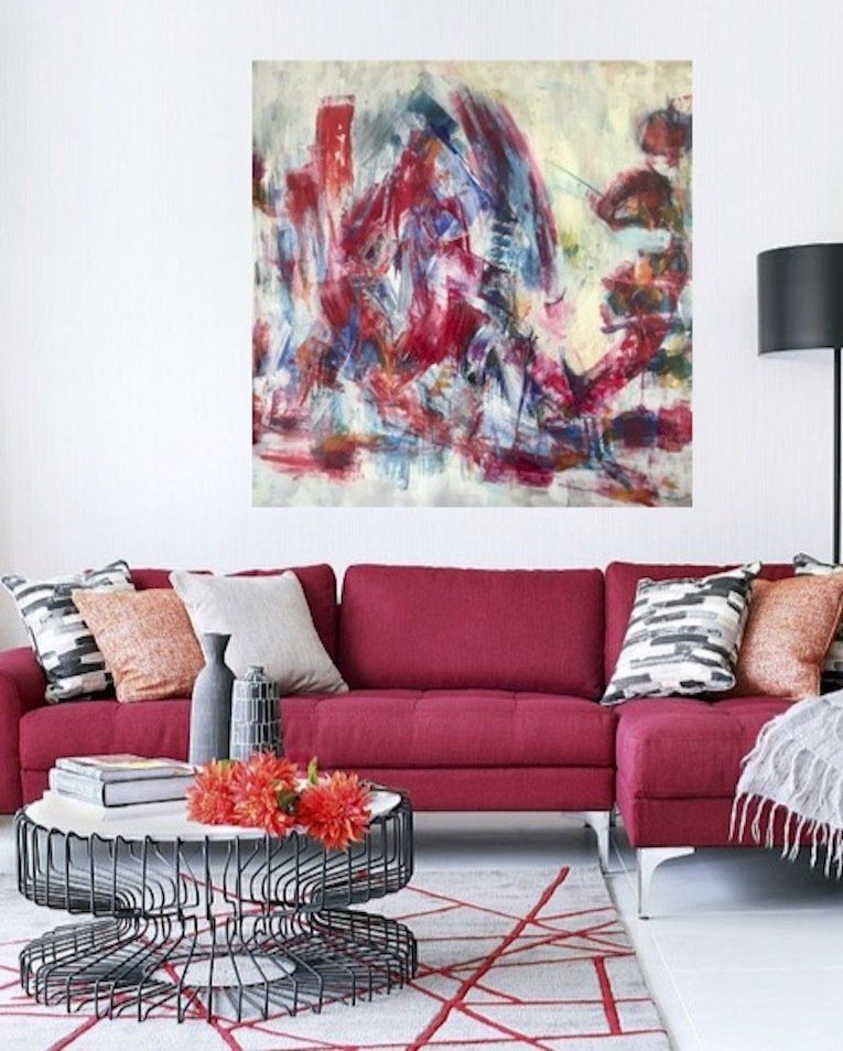 The color RED stand for love, passion, life and vital energy. I love the strong vibrations of this color and combine them with pulsating energetic gestures and strokes. Red gets your attention immediately. Great paintings for living rooms.