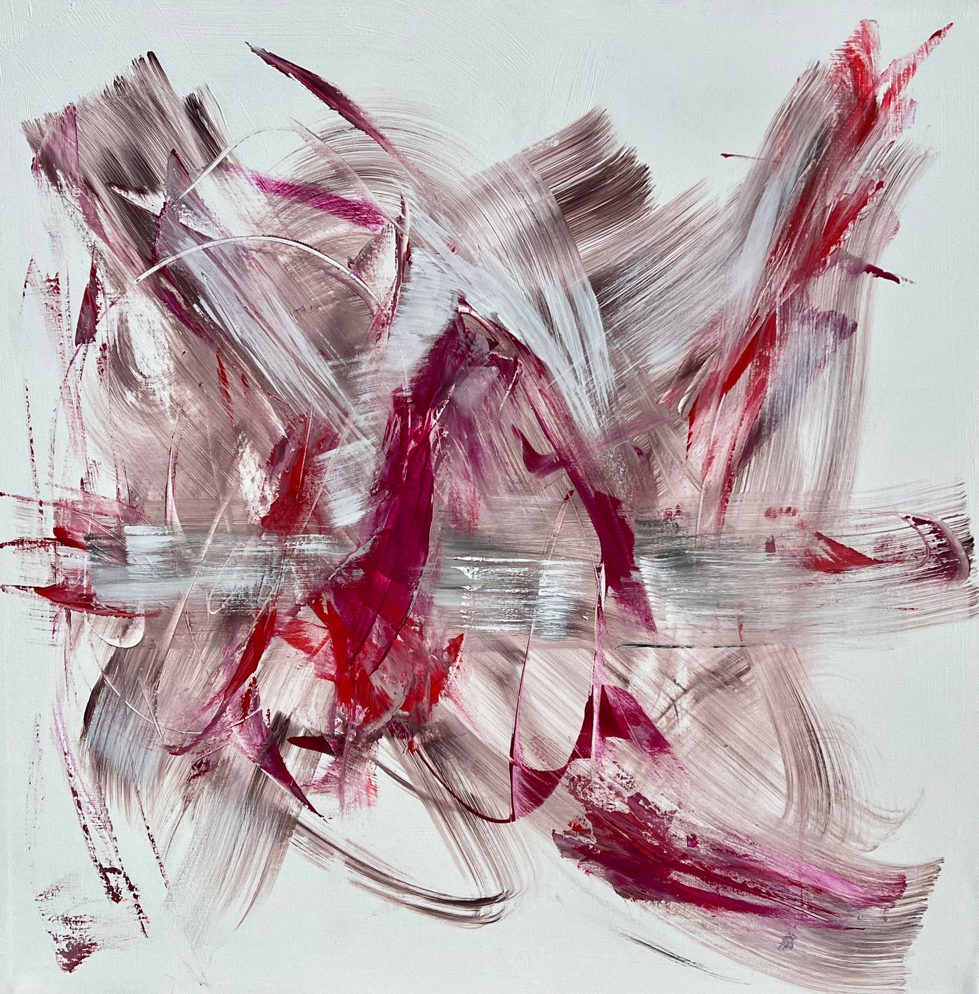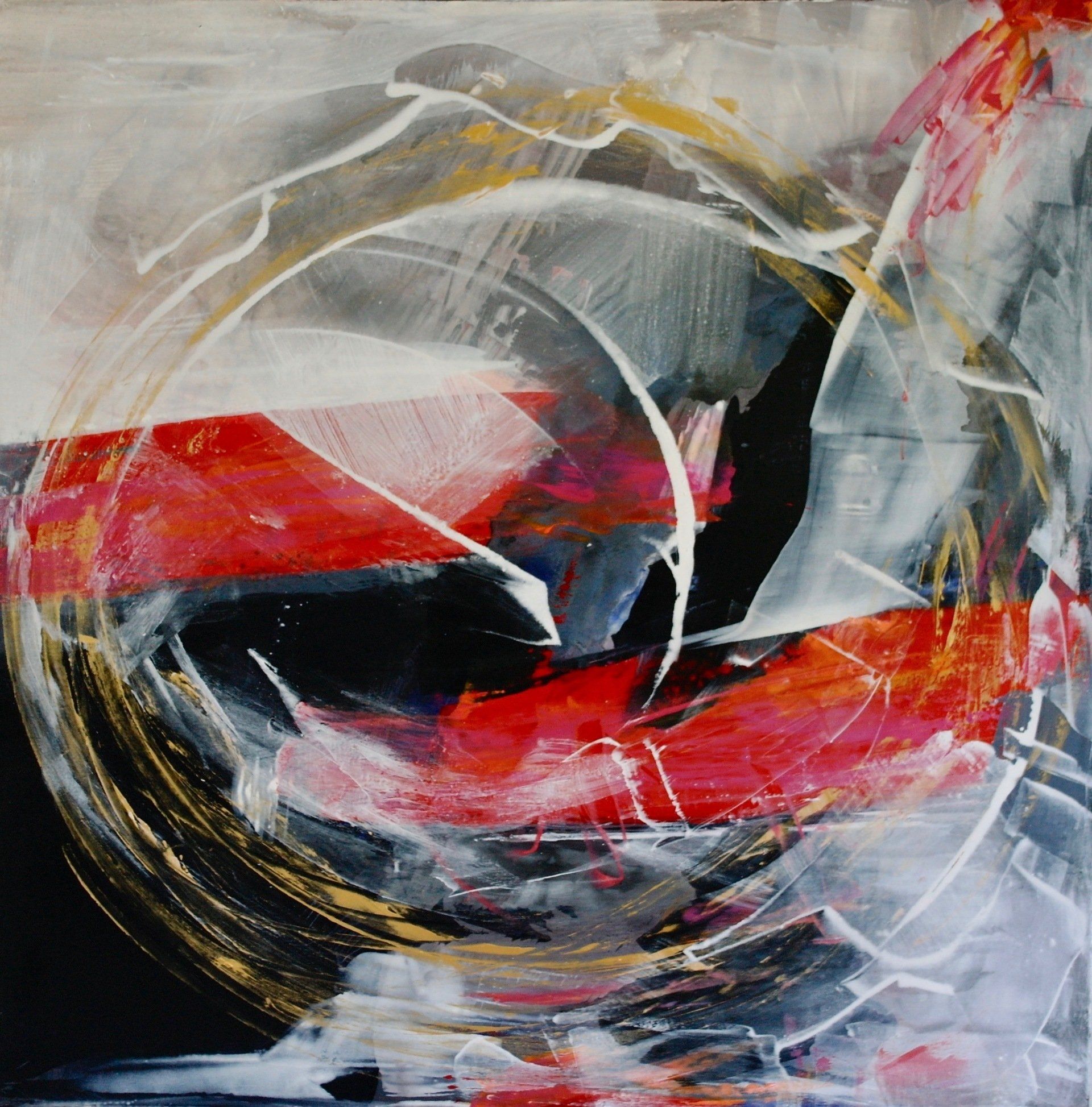 The color RED stand for love, passion, life and vital energy. I love the strong vibrations of this color and combine them with pulsating energetic gestures and strokes. Red gets your attention immediately. Great paintings for living rooms.
