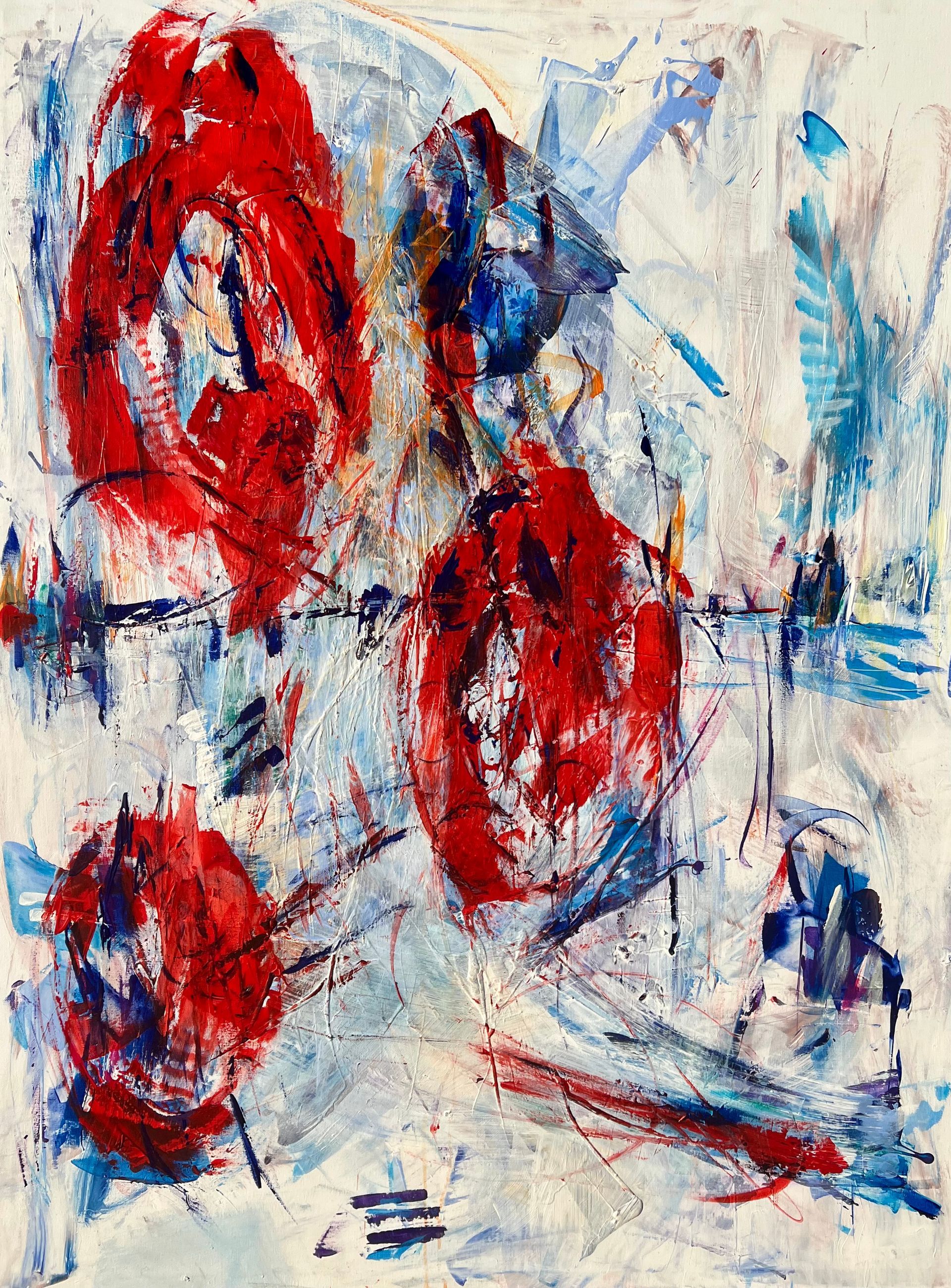 The color RED stand for love, passion, life and vital energy. I love the strong vibrations of this color and combine them with pulsating energetic gestures and strokes. Red gets your attention immediately. Great paintings for living rooms.
